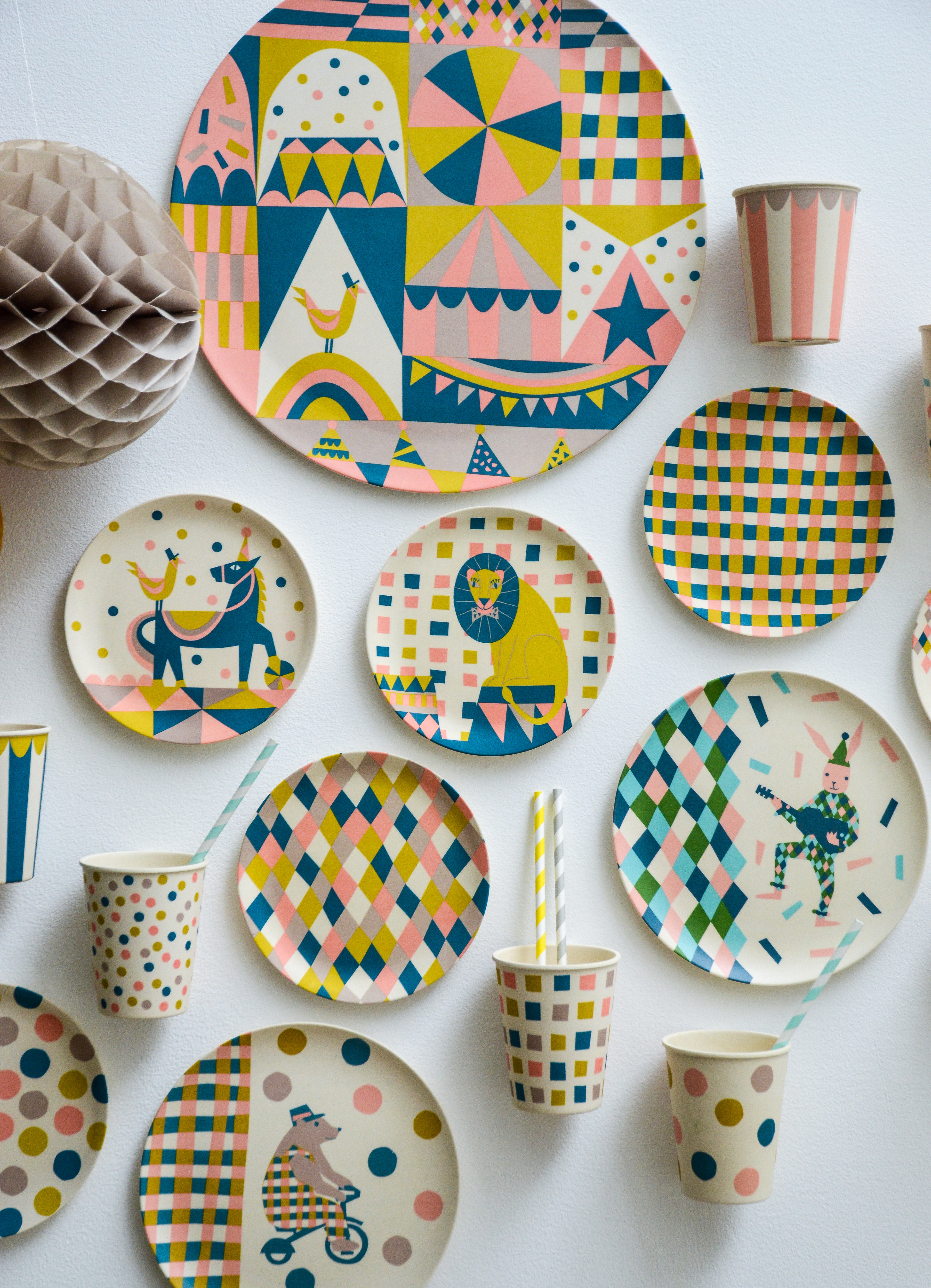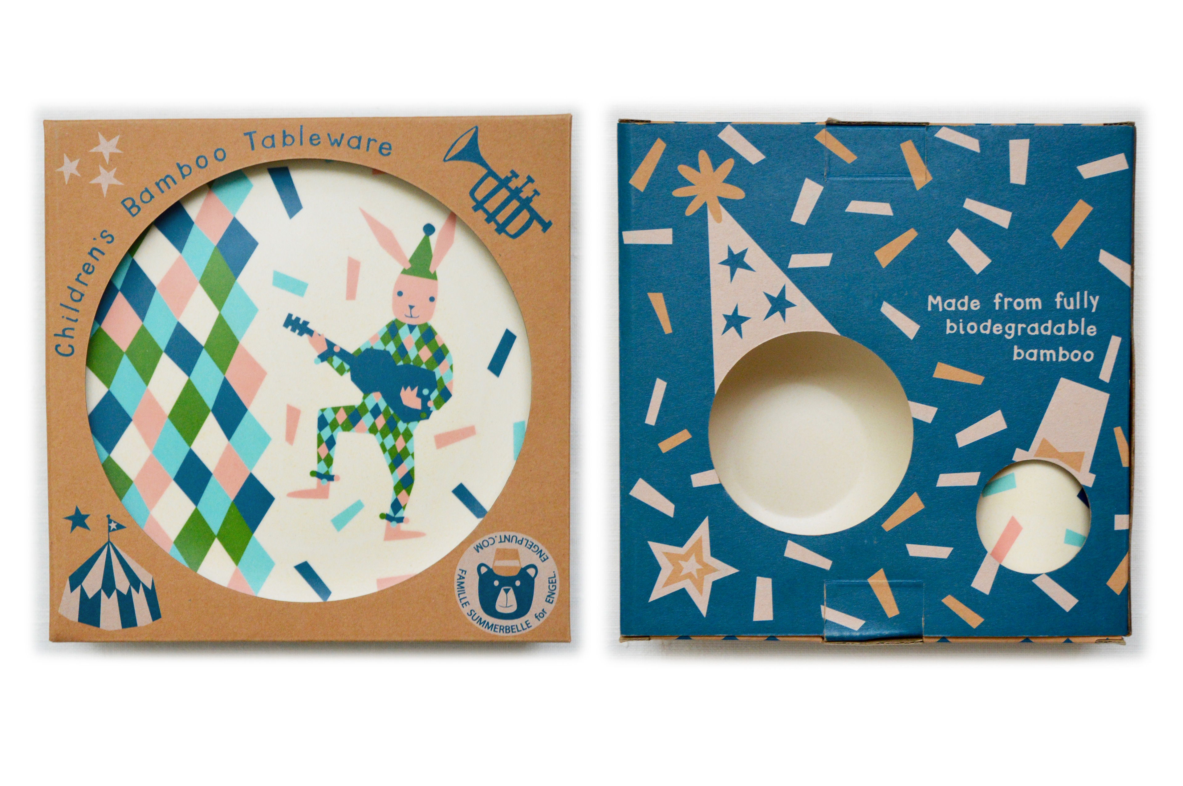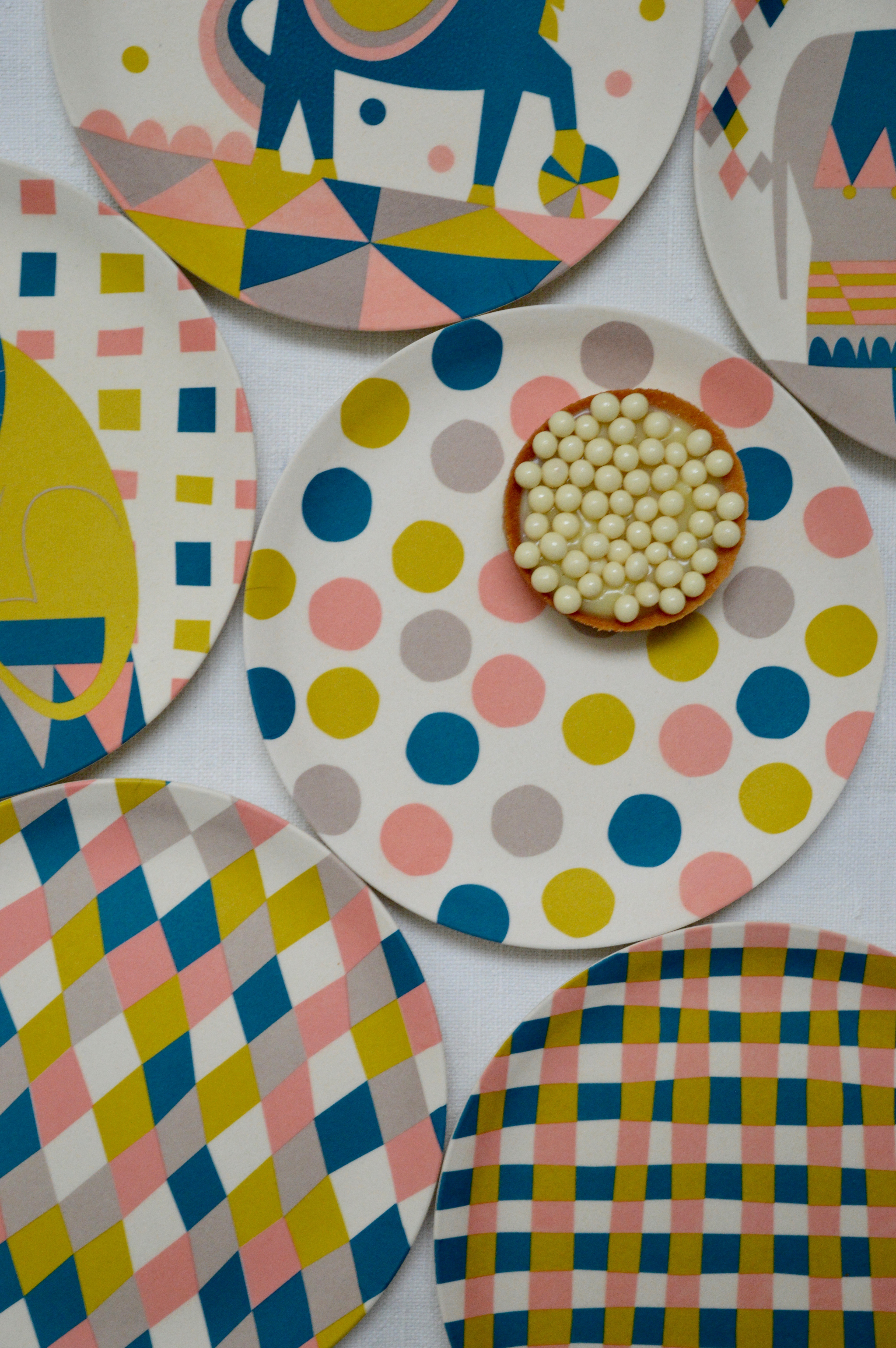 I was commissioned by Dutch brand Engel to design a collection of plates, cups, bowls, cake plates, wood cut cake topper, candle boxes and packaging for a range of eco-friendly tableware made with bamboo fibre.
